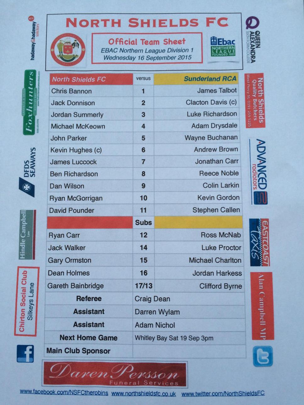 North Shields 1-2 RCA.