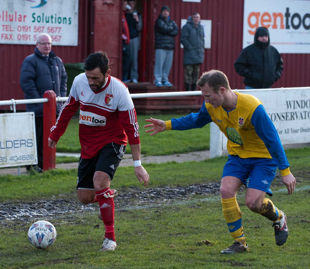 New signing Jamie Clarke is tracked by Durham City and ex-RCA defender James Oates in the first half of the match.