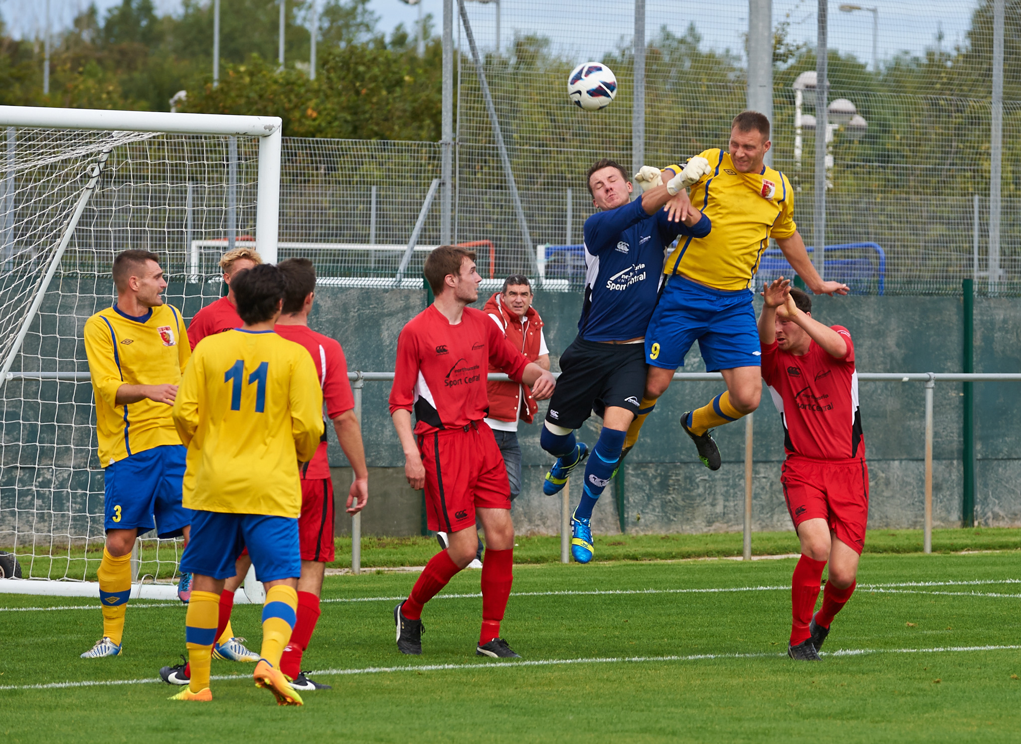 Minutes later and RCA were in front, Jameson threw the ball to substitute Brown, he carried the ball forward before senting in a deep cross which was met on the edge of the penalty area by Barton who managed to power a header past the flat footed Jennison.