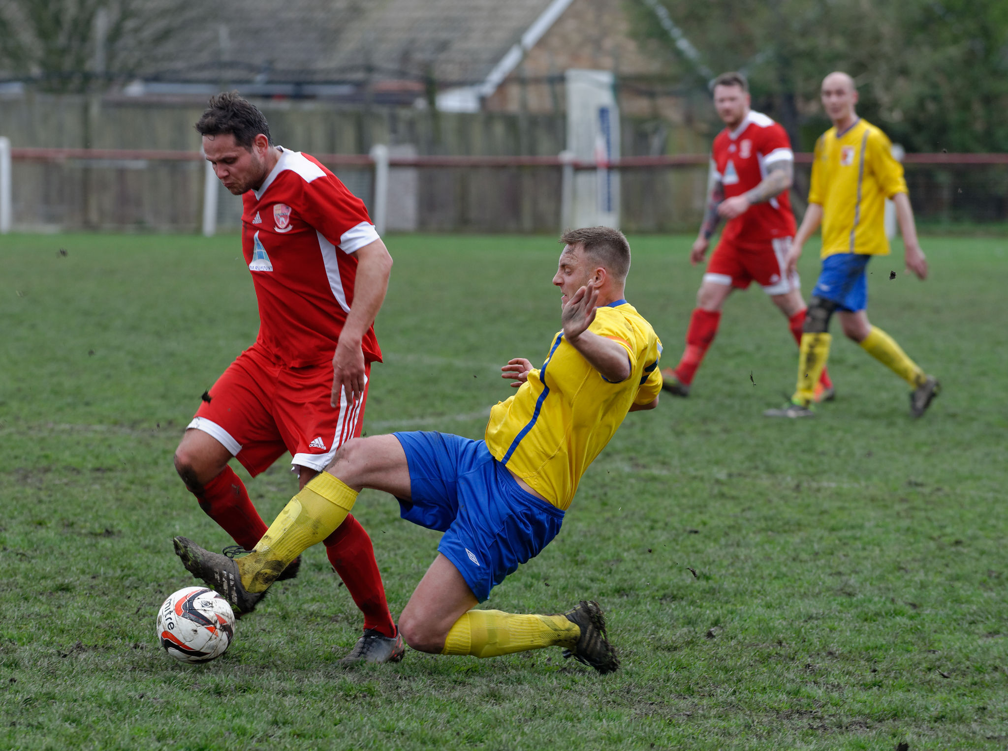 Both teams started, understandably, nervously and the opening ten minutes were very scrappy with neither team coming to terms with a very uneven surface.