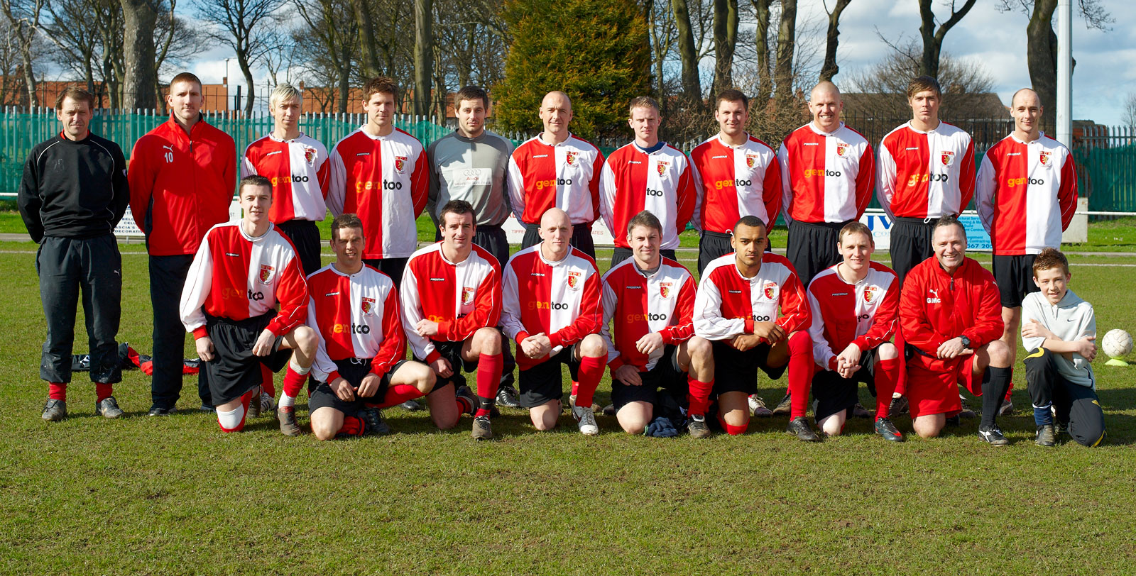Front row, left to right: Liam McBryde, Gary Shields, Martin O'Riordan, Steven Stewart, Steve Halliday, Ash Davis, Darren Kokes, Glen McCartney, Assistant Manager, mascot.