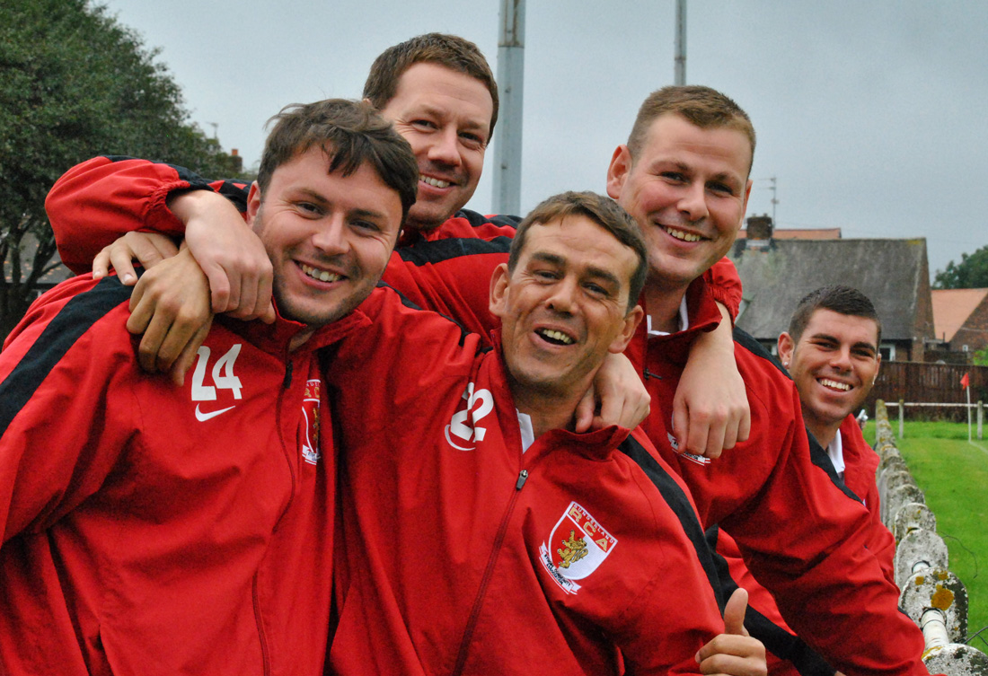 From left, Adam McGuinness, Craig Shields, Gary Shields, Neal Atkinson and Adam Ward at the Ryhope CW -- North Shields game, Saturday, 25 August. Photo © Craig McVay.